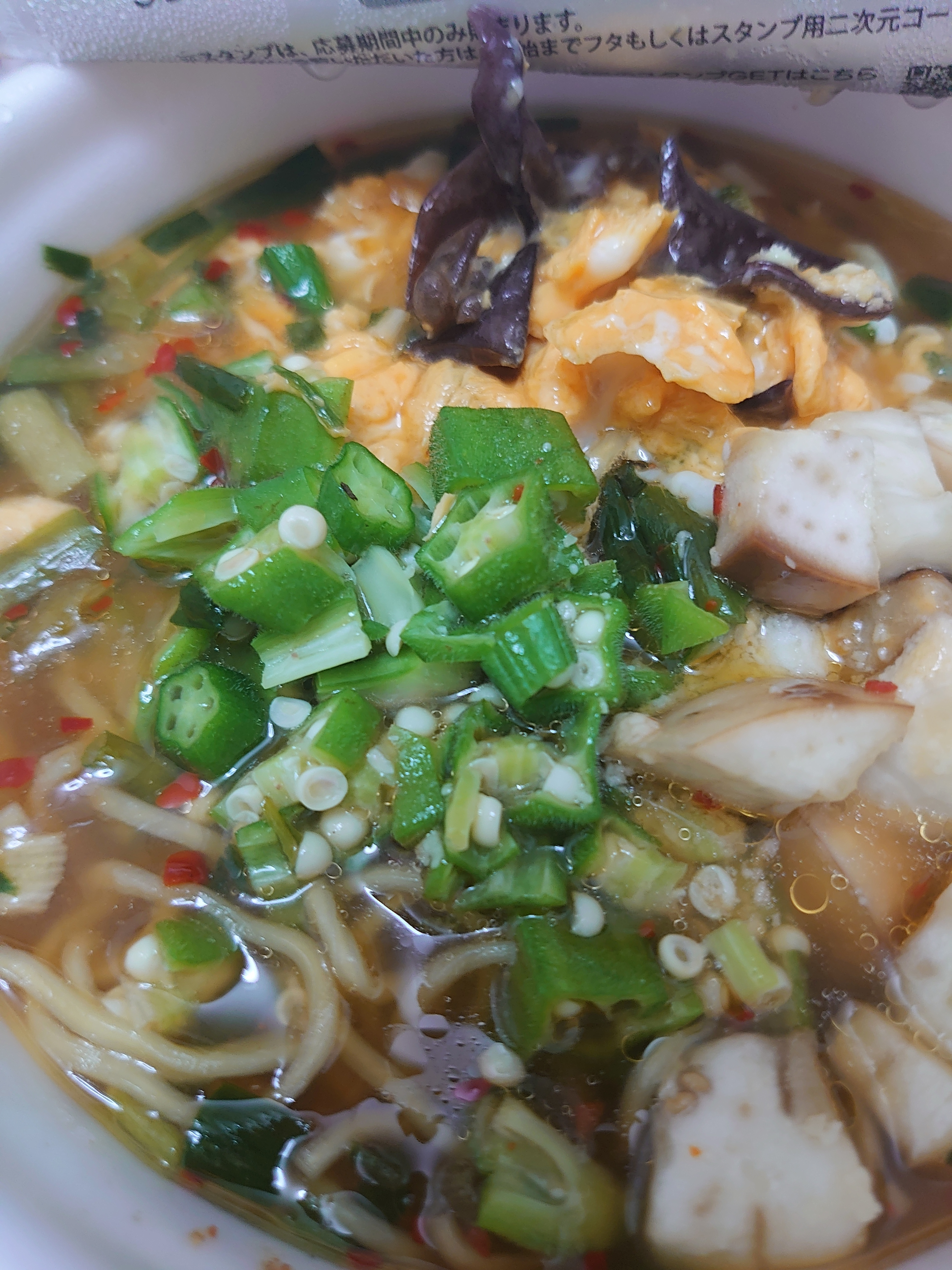 オクラの緑、卵の黄色、彩り良いですね😊