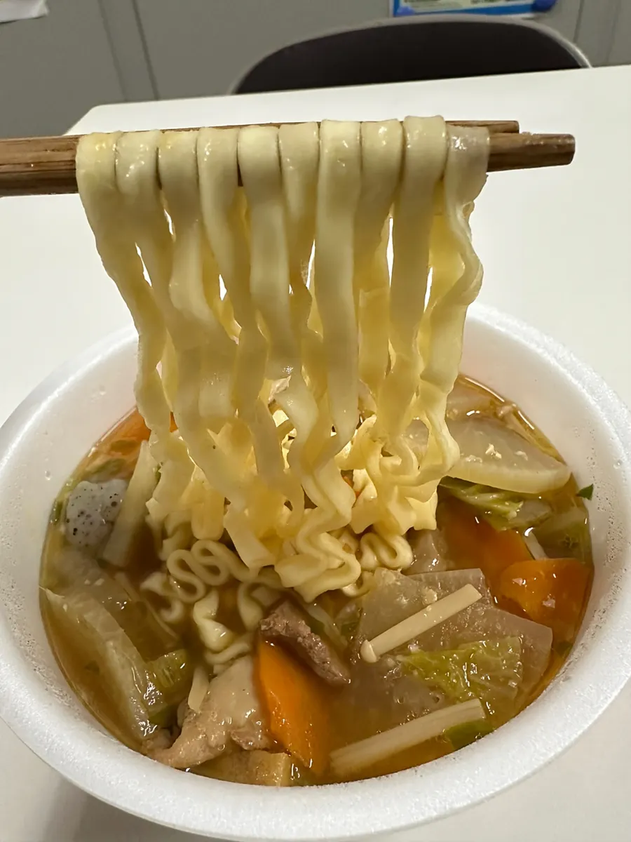 トップ > 今日の凄メシ! > おいしい豚汁うどん改 クロネコ 2025/09/24 21:18 おいしい豚汁うどん改 豚汁が出ていたので私も豚汁😸 ヤマダイさんのおいしい豚汁うどん かやくとスープ スギオさんのとはちょっと違いますが確かにヤマダイ製です。 右の黒いのは保温ジャー 標準だとこんな感じです。麺が昔のどん兵衛みたいにピラピラ(よくわからない表現)しています😅 これに黒い保温ジャーの中身を盛ります😄 豚汁うどんの豚汁盛り😄 具沢山の豚汁うどんになりました。お腹も満腹です。 ごちそうさまでした😋 ではまた🐾 いいね 共有する 共有する X facebook LINE リンクをコピー コメントする 1 件の返信 (新着順) ミュートしたユーザーの投稿です。 投稿を表示 いっちゃ 2025/09/25 08:13 肌寒くなって豚汁シーズンが近づいてますね。 いいね 返信する ミュートしたユーザーの投稿です。 投稿を表示 クロネコ 2025/09/25 08:18 ウチは豚汁もう3回目ですが😸 いいね 返信する