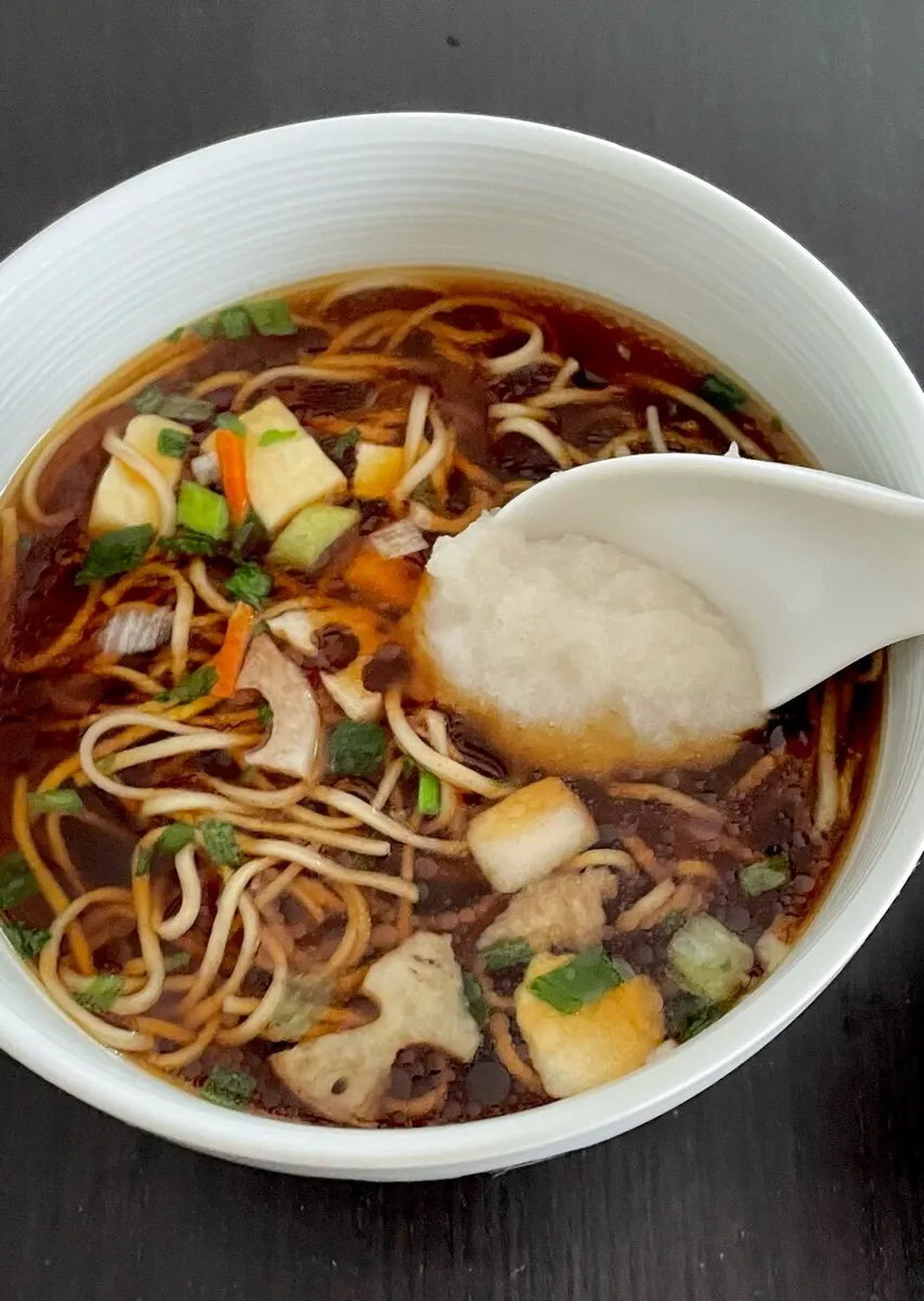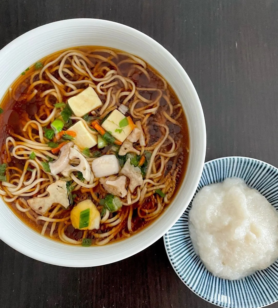 蕎麦の風味をより感じるにはこちらもありですが、蕎麦自体が冷たいのでお汁がだんだんぬるくなるのと、ひと手間増えることを考えると、普通にあったかいけんちん蕎麦としていただく方が私は好みですね。