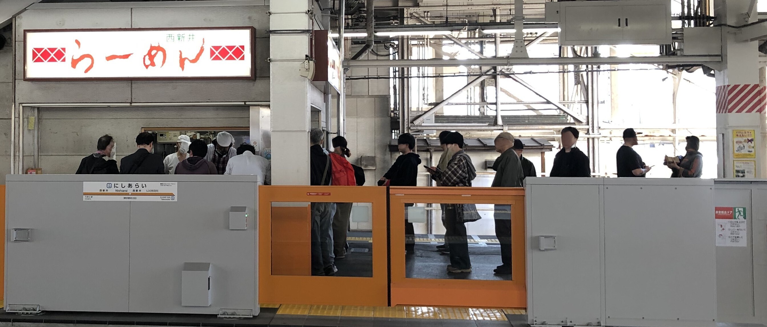 東武スカイツリーライン西新井駅ホームにある1969年創業、立ち食い(非常に珍しい!!)らーめん店で2026/3/31閉店前のちょっと前に、食してまいりました^^