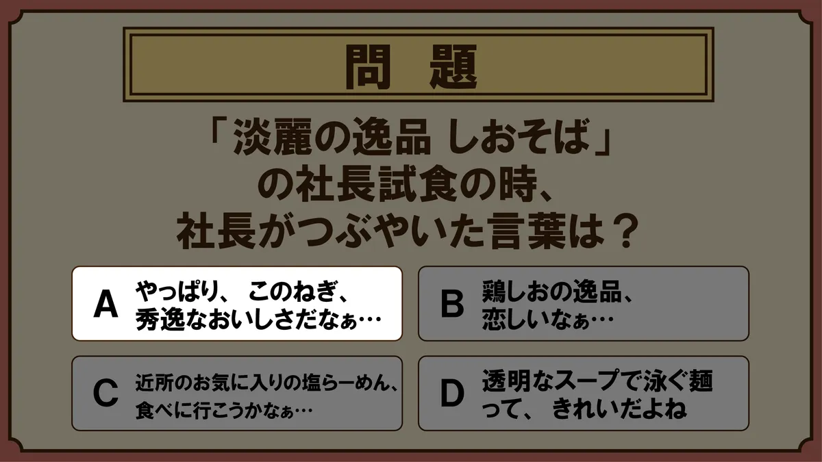 最終回は、社長のお気に入りの商品でもある、「王道の逸品 中華そば」から出題!