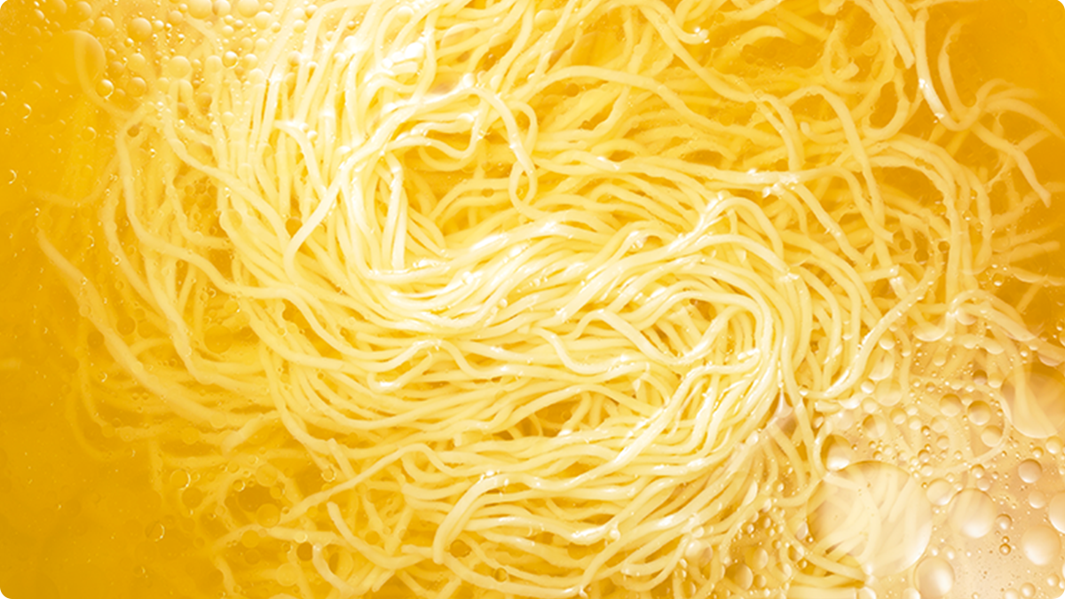 かんすいの具体的な効果 ・色:黄色くなる ・風味:卵のような独特の風味 ・食感:コシと滑らかな喉越し |