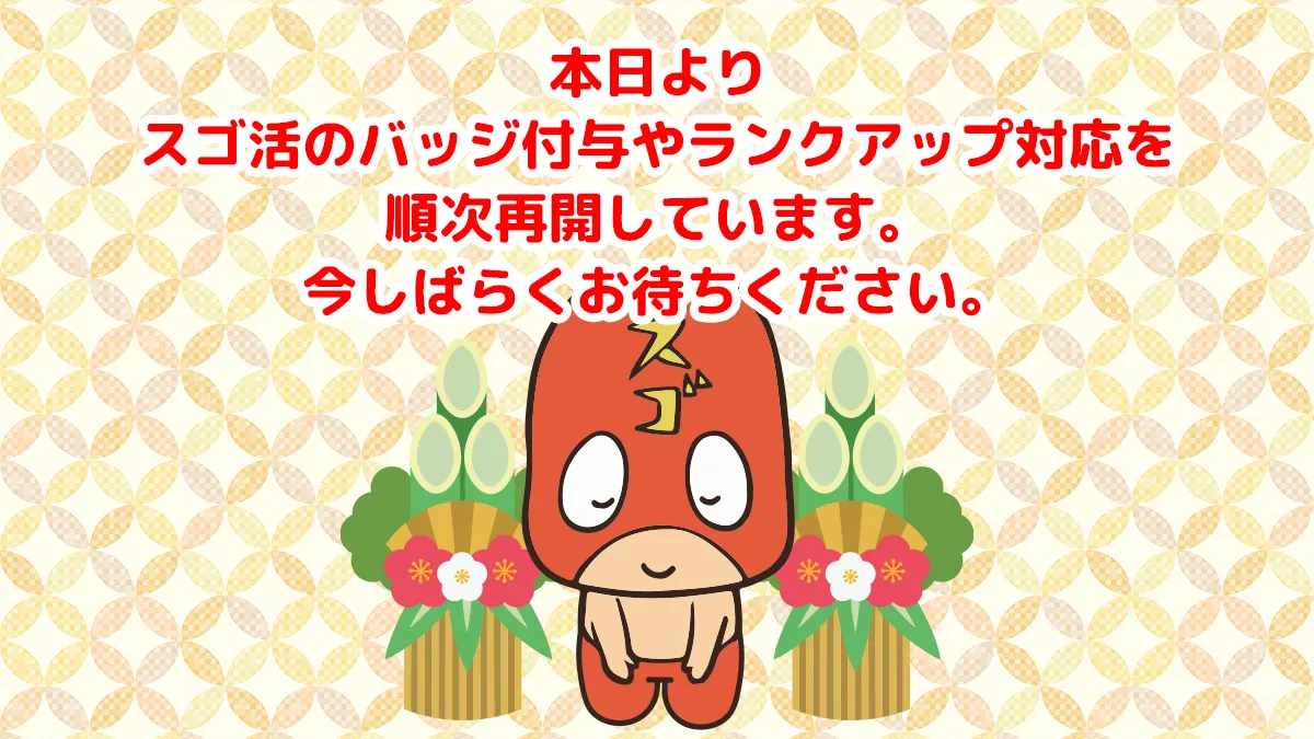 本日より、スゴ活のバッジ付与やランクアップ対応を、順次再開しています。