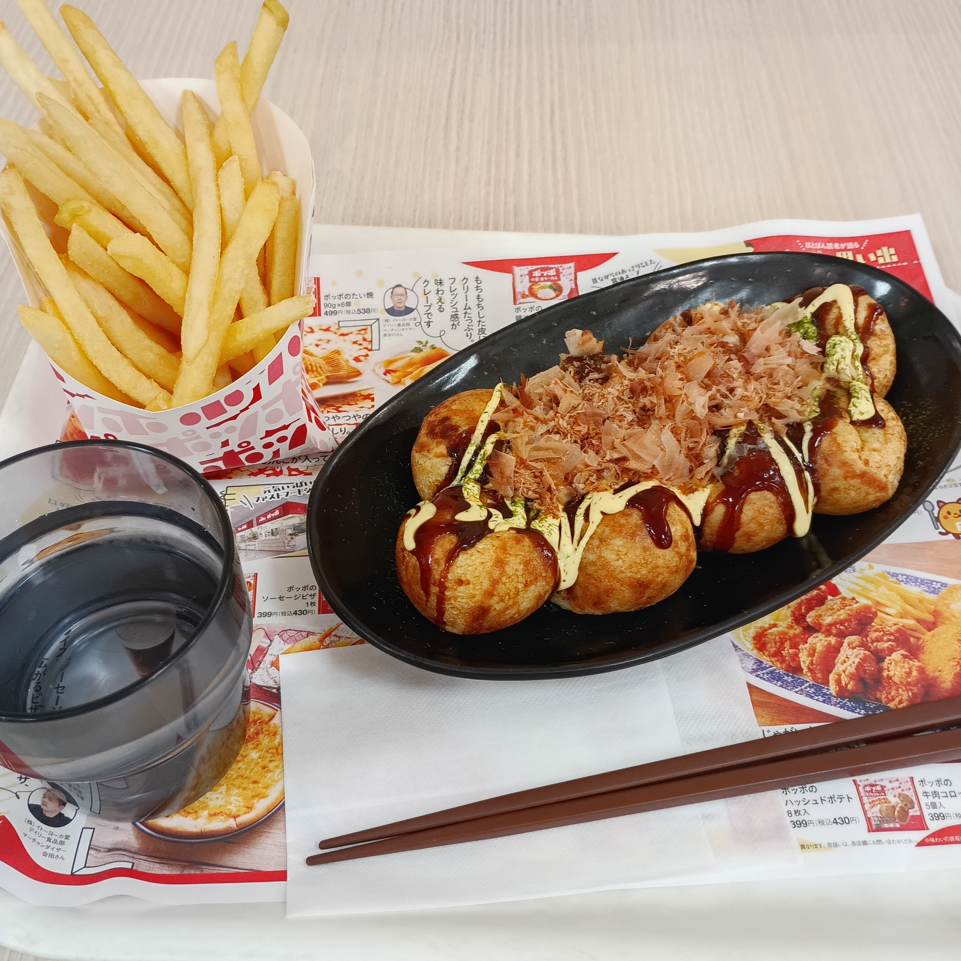 たこ焼き、ポテト、焼きそば、ラーメン