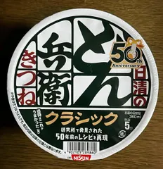 たまたまスーパーで見かけて買いましたクラシック。昔を彷彿させる味なんでしょうねと思いながら食べたんですがあれ?なんか違うようなピラピラした麺もこんなんじゃなかったようなつゆものっぺりした味でうまくもなんともないニュータッチの豚汁うどんの方が昔のどん兵衛に近いと思いますが味の記憶ってしっかり残っている