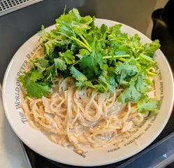 スーパーへ行ったらパクチーがありました😅あったのなら買わなければなりません。で、早速昼に頂きました。 生クリームにチーズと超濃厚ソースに爽やかなパクチー🌿濃厚な味 VS 独特な香りお互い強いので普通に食べれた奇跡✨️こうして食べれるようになっていくのかしら🤔? 次は蕎麦にパクチー
