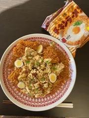 凄麺でもチキンラーメンのように🍜 🔴凄麺でもチキンラーメンのようにそのままでも食べられる麺があればと猛烈に思う秋の日であります!🔴🔴🔴🔴🔴🔴🔴🔴🔴🔴🔴🔴🔴🔴🔴🔴🔴🔴🔴🔴🔴🔴🔴🔴 さて 🍜 今日はチキンラーメンをそのままで作った⭐️バリバリ麻婆豆腐あんかけ焼きそば⭐️です。 ベビースターラーメ