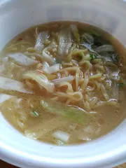 ねぎみそで~す! ネギとスープは上なのに、なんでにんにく底にあるねん?と言っておりました。 いや、蓋にも「にんにく」って書いてあるやん?