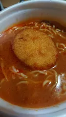 朝ラー おはようございます。朝から仙台辛味噌に昨日買った2個で173円が半額になってたカボチャコロッケの一つをトッピングしてみました。