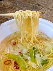 ようやくしおそば いよいよと申しますかようやくと申しますか、ようやくしおそばをいただきました。楽しみは後にまわすタイプなの。フリーズドライの小袋を開けた時にゃねぎのかほりがふわっと。それめがけてお湯を注ぐときのほどける様はまさに!…思いつかない!とにかく鶏の旨味極まる洗練されたしおラーメンでした(フタのコピーまんま)