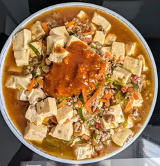名古屋台湾麻婆飯麺 ◆使用した凄麺名古屋台湾ラーメン◆アレンジポイント麻婆麺と麻婆飯を味わえます。 豚肉はビタミンB1が牛肉の約8倍と非常に豊富で、疲労回復や糖質代謝に優れた健康食材🐷豆腐は高たんぱく・低カロリーで、必須アミノ酸を含む良質な植物性たんぱく質、鉄分、カルシウム、女性ホルモンに似た作用を持つ大豆イ