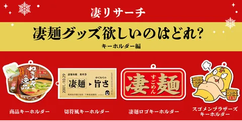 【凄リサーチ】凄麺グッズ欲しいのはどれ? こんにちは!すごめんち管理人です!一気に冷え込んできて、冬本番!という気がしますね。今年もあと少し...振り返ってみると、今年は新グッズをあまり作ってこなかったなぁと思った管理人たち。そこで、2026年に向けてグッズを制作しようという話となりました!グッズなら、普段から持ち歩けるものがいいのではと思
