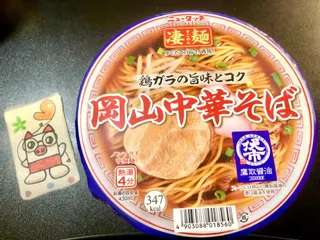 歯切れ良き中細麺の食感に驚き♪ ◆使用した凄麺:岡山中華そば◆アレンジポイント:カップ麺を食べる時に不足しがちなタンパク質を鶏の唐揚げと卵トッピングで摂取!私の定番トッピング♪ 『岡山中華そば』いや〜お恥ずかしながら「岡山中華そば」というご当地麺を私は知りませんでした。しかもパッケージを見るとオーソドックスな中華そばにし
