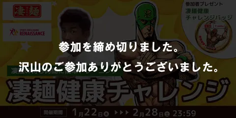 <終了>【凄麺×ルネサンスチャンネルコラボ企画】凄麺健康チャレンジ💪✨