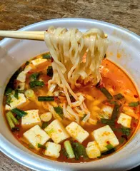 うどんの逸品 純豆腐チゲうどん! いただいちゃいました! 辛さは控えめで、むしろ甘みさえあるくらいだけど、ふだんから類するものをいただいてるので参考にならないかもです。 お豆腐がイイですね!お豆腐のやさしさと型くずれしない程度の拮抗がちょうど良いですね! ちなみに下の画像は昨年発売の、うどんの逸品 豆腐