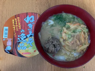 ネギ味噌の逸品ぼっかけラーメン 普通にネギ味噌の逸品を作ります。最後にぼっかけ(スジ肉)とかき揚げ天ぷらを入れます。更に深い味わいのあるネギ味噌の逸品を楽しみました。