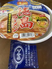 QR付き徳島発見。連結テープ付き 近くのスーパーの徳島ラーメンがQRコードバージョンに入れ替わってました。しかもまたかやくの連結テープ付きでした!当たり⁉️