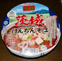茨城けんちんそば 前回食べた時にややかえしの味が強いように感じたので、今回はお湯の量を調整しました。具体的にはお湯を注いで5分経過し、つゆを入れる段階で、そばが吸ったであろう分のお湯を追加で注いでからつゆを入れてみました(つゆを入れる段階で、お湯の量が目安のラインから下になっていたので、ラインに戻るまで補充した)。そ
