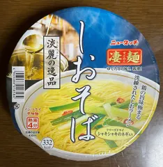 淡麗の逸品しおそば 昨日、友人に凄麺の品揃えが良い酒屋さんに連れて行ってもらったら「しおそば」「中華そば」を買うことができました。今日はしおそばを食べました。透き通って、油のキラキラで素敵なスープ。このスープがとても美味しい!まるでラーメン屋さんの「塩ラーメン」のようでした。かやくはネギと唐辛子だけなのに満足感がある「