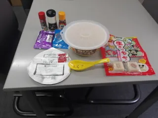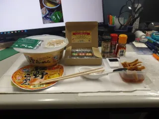担担麺のランチを済ませ凄麺を探しに立ち寄ったドラッグストアで並べてあったのが意外な組み合わせ凄麺富山ブラックと懐かしのとん汁うどん意外な2種類だけ売ってました😃今日の3食麺目はニュータッチ懐かしのとん汁うどんを実食です! かやくを入れたら5分待ち麺をほぐして後入れ粉末スープを入れます。麺と