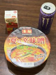 夏の辛味噌ねぎラーメン🍜 みなさんおはようございます😊昨夜は麻布台ヒルズのイベント引き上げで天辺を回ったので午後から出勤です眠気覚ましに夏の辛味噌ねぎラーメンを食べて頑張って来ます✨トマト🍅ジュースにモンエナを添えて