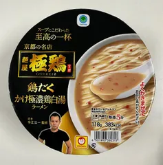 他社製品食べました 東水さんの製品らしいです。ファミマに1個だけあったので釣られて購入。このように3袋入っているんですが、なんと全部召し上がる直前に入れるよう指示。完成図がコチラですね。具材らしい物は一切入っていません。スープにこだわったラーメンだとか。まぜまぜしてわかったんですが、ドロドロ系です。片栗でも入ってるんで