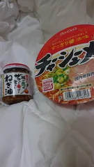 今日、おそらく隠れすごめんちじゃないかと思っている近隣の酒量販店にて、このチャーシューメンと八王子ラーメン、凄麺の夏の辛味噌などを購入して来ました。最近ハマってる桃屋の「揚げ葱がザクッと香ばしい食べるねき油」をトッピングして食べてみます。このねぎ油ご飯に乗せても美味しいんです。2瓶も買って来ました(