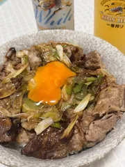暑いんで‥ お家でぷち贅沢🤭広島県民のソウルフード『コウネ』で、コウネ丼 お肉のとネギ焼いて、ほりにし振って下味お肉とネギが焼けたら、油を切ってお肉とネギをご飯の上に乗せ、卵落としてうなぎのタレを全体にかけたら出来上がり❣️ビール🍺が進みます🙌 あ〜幸せ〜🥰