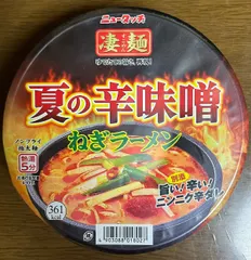 夏の辛味噌ねぎラーメン 昼ラーは夏辛😅これまた得意の座布団かやく。ねぎみそにも似ていますがこの赤色が目印か😄出ましたねぇ、、見るからに辛そう💦これを啜る時は麺の下側を箸で押さえましょう。かなり気をつけても飛び散ります😅焼肉用の紙エプロンがあれば尚いいですが。この時期でも汗は吹き出ますね💦 タオルは必須。ごちそうさまでした😋