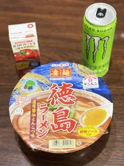 リニュ前 徳島ラーメン おはようございます😊週末土曜日良い天気です✨今朝は先日買い求めた徳島ラーメンです右下に燦然と輝く「卵黄ソース」付きの文字卵黄ソースは味わい深く濃厚でしたモンエナはキャラクターのすだちくんに合わせて緑にしてみました🙌クルマは仕様変更で鈑金屋さんに預けてしまったので乗ることも出来ずに暇しています🙌完成が
