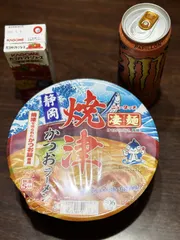 NEW スタ活 焼津かつおラーメン🍜 みなさんこんばんはお疲れ様です😊せっせとスタンプラリーに励んでます今夜は焼津かつおラーメンを家内と一緒にいただきました✨信州味噌と焼津は家内の推し麺ですこれまた相当久しぶりに食しますがやっぱり優しいお味ですね トマト🍅ジュースにモンエナも忘れずにスタンプも10個を超えて来ました🙌