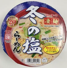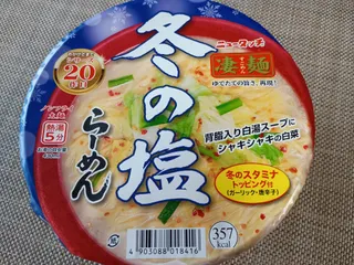 NEW 【スゴ活】冬の塩、見つけました! 昼休みにカ◯ミ、ウ◯ルシア、カ◯チと回ってやっと見つけました。早速、昼ご飯にいただきました。 スープを入れてかき混ぜると白濁してきます。背脂は細かいのがたくさん。白菜たっぷり。冬のスタミナトッピングをいきなり入れてしまったので、次はスープ単体で味わってみようと思います。実はまだ風邪から完全