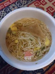 手延べそうめん(煮麺) 手延べそうめんを頂きました😸夏にリニューアルされる前のタイプ😸 そうです、このお揚げ😸今は鶏団子に変わりましたが、私はこちらの方が好きですね😸
