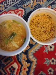 【スゴ活】ねぎみその逸品たべた!@ビジホ 先日、宿泊を伴う出張でのビジホ飯で【ねぎみその逸品】をいただきました!! 中身は三つの袋(おろしにんにくがうれしい!!) ビジホでもちゃんとお湯変えして~ 素でいただきます!濃厚な味噌スープを纏った太麺がシコシコでうまい!!甘めで(野菜の甘味なん