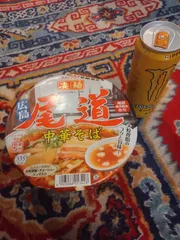 尾道中華そば 少し遅い朝ごはんに尾道中華そば😸 モンエナも添えてみました😼