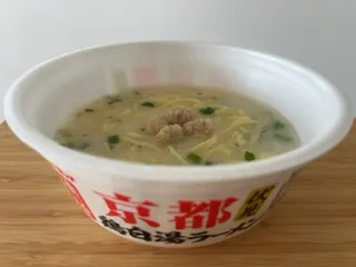 京都伏見鶏白湯ラーメン 今年の締め凄麺に京都伏見鶏白湯ラーメンを食べました 湯戻しを終わり粉スープを投入したときに酒粕の香りが!正直、期待してなかっただけに意外でした💦液体スープを入れいただきま~すまずスープをひと飲みするとなぜかなぜか生姜風味を感じました...原材料を見ても生姜は入ってなさそうなのになぜ??んで