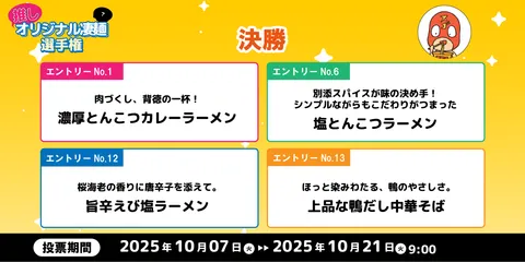 【投票終了・結果公開中】推し『オリジナル凄麺』選手権 予選グループA