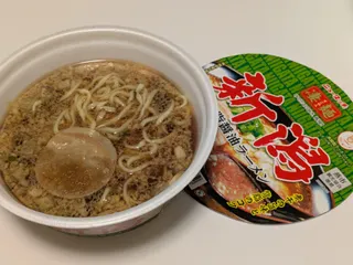 今朝は「新潟 背脂醤油ラーメン」いただきました。ちょっと体調が回復して、味が分かるようになってきました。今年は長引くなぁ。 モチモチとした極太麺に濃厚なスープが絡んで、ひと口ごとに幸せです。噛みしめると麺の甘みと背脂、玉ねぎの甘みが口の中で混ざり合って旨みが広がります。 美味しい