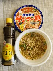サンマー麺+ごま油 今さっき、サンマー麺をいただきましたもやしが乾燥タイプになって初めてかな?いや、食べたような...💦私、サンマー食べるときにはごま油は必須となっておりますw香ばしさがましてほんと美味しいです!!(部屋の中にニオイが充満するけどw)とろみに香ばしさ、美味しかった~!でもやはりサンマーのもやしにはミイラ