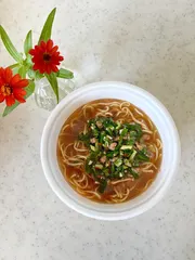 埼玉スタミナラーメン。 埼玉スタミナラーメンを食べました! 楽しみにしていた新商品、想像通り美味しかった〜♪ 具もニラとそぼろ肉がたくさんで正にスタミナ満点! 麺とよく絡むとろみスープも最高でした! ごちそうさまでした!