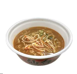 今日のように寒い日にはぴったりのラーメンですね。サラッと飲めて後からじわじわ辛みが蓄積されてくる本品のスープは体を温めるのに最適。シャキシャキの生タイプモヤシ&ニンジン、太麺のどちらもスープとの相性がとてもよく、おいしく食べられました。これが自宅だったら、ここにすりおろしニンニクをマシて寒さ対策を万