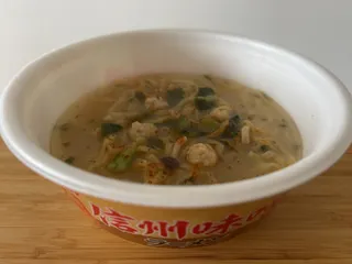やーっと食べましておめでとうわたし鶏肉団子と野沢菜、ぶなしめじとバランス良い具に吟味ブレンドされた信州味噌とモチモチ生麺タイプの太麺、ダメ押しで八幡屋礒五郎の七味も付いて、そりゃーもー安定の美味しさ!安定すぎて語る言葉も無いくらいです。。おむすびと食べるといちばん美味しい凄麺かもしれません!