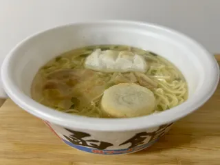 函館🍥 塩ラーメン🍜スタンプ2個目🌟ラーメンの塩好きなので凄麺では貴重な一杯✨お麩が旨味たっぷりのスープを吸い込んでじんわり美味しいんですよね😋ちなみに今年の冬の塩未だGETならずです🥺