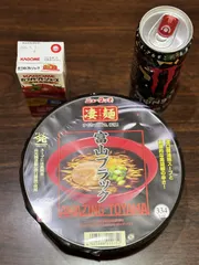 寝落ちしましたが…富山ブラックSunday✨ みなさんおはようございます😊投稿しようとして寝落ちしました…でもしっかり食べております 成人の日も仕事なのでモンエナの代わりにノンアルハイボールとトマト🍅ジュース もう1日頑張れば火曜と水曜は連休です凄麺食べられて!呑めます✨楽しみにして仕事して来ます