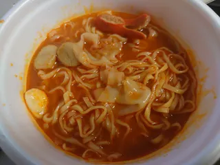 ラー博スゴメンラボにて2年以上前に制作し食した過去品🍥これもなかなか食べれなくて暫く熟成させてました😂(よく見たら賞味期限1ヶ月だった💦)オリジナルのふた作成出来るのにも関わらず良いアイデア浮かばんくて既存のデザイン採用したポンコツです🥺ネオン×ピンクの容器にしたけどパケの写真撮ってなかった😅麺は極